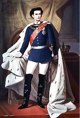 En 1863 la mort du roi de Danemark va allumer un conflit pour la possession de duchés qu'il contrôlait. Bismarck, chancelier de Prusse, tisse une toile qui vise à faire de la Prusse le Premier des Etats allemands. L'Autriche est son alliée (souhaitant consolider ses frontières) et la Bavières'y trouve aussi obligée en tant qu'Etat allemand. En Mars 1864 les troupes austro-prussiennes défont l'armée danoise. Maximilien, rentré d'Italie où il soignait ses rhumatismes articulaires, tombe malade (fluxion de poitine) et meurt à 59 ans. Louis II devient roi ; il n'a pas 19 ans. |