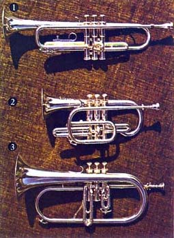 1 : trompette ; 2 : cornet à pistons ; 3 :