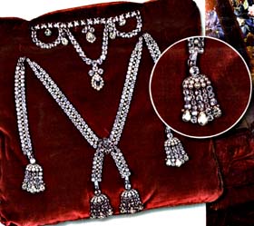 L'origine et l'objet : Le 12 juillet 1785, le bijoutier Böhmer vient à Versailles présenter à la Reine quelques bijoux, et lui remettre une lettre de son associé Bassenge dans laquelle il est question d'une parure de diamants d'une valeur de 1 600 000 livres ... ( soit 7 millions d'euros actuels !) que déjà précédemment le Roi et la Reine avaient refusé d'acheter. Dans cette lettre, jugée si peu claire et inutile par Marie-Antoinette, qu'elle la brûlat, il était question "d'arrangements "... Un mois plus tard, Böhmer surpris de ne pas avoir de réponse, révèle à Madame Campan, femme de chambre de la Reine, que cette dernière aurait acheté le collier par l'intermédiaire du cardinal de Rohan. Madame Campan, connaissant l'aversion de la Reine pour Rohan, avertit celle-ci qui tombe des nues et convoque le joaillier qui, de bonne foi, lui explique la transaction qu'il croit faite avec l'aval de la Reine. |