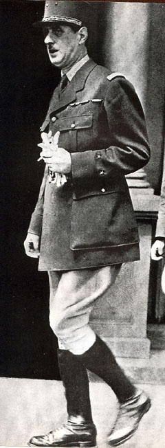 L'Entre-Deux Guerres En 1920 il est Chef de Cabinet du général Niessel, missionné en Pologne. En 1921 il se marie avec Yvonne Vendroux et devient Professeur adjoint à l'Ecole militaire de Saint-Cyr. L'année suivante il intègre l'Ecole de Guerre d'où il sortira en 1924. En 1925 il est à l'Etat-major de l'armée du Rhin, puis au Cabinet du Maréchal Pétain au Conseil supérieur de la Guerre. En 1927 il accède au grade de Commandant. En 1930 il est affecté au Secrétariat général de la Défense nationale, avec le grade de Lieutenant-Colonel. En 1935, devant la montée du nazisme en Allemagne il réclame, en vain bien qu'appuyé par des Hommes politiques, la création d'un Corps cuirassé dont il a vu l'importance en cas de conflit. En 1937, promu Colonel, il commande un Régiment de chars, à Metz. En 1938 il se fâche avec le Maréchal Pétain. |