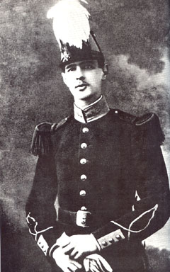 La Jeunesse Charles-André-Marie-Joseph De Gaulle naît à Lille le 22 Novembre 1890 dans une famille bourgeoise, religieuse et nationaliste ; son père est professeur d'Histoire et monarchiste modéré. Il sera toute sa vie marqué par cette éducation. En 1909 il est reçu à l'École militaire de Saint-Cyr où, après un an passé comme " homme de troupe " il entre en 1910. Sa stature lui vaudra le surnom de " la grande asperge " ou "double mètre ", puis son autorité ceux de" le coq " (en référence à l'emblème français) et" le connétable " (le plus haut grade militaire sous la Monarchie). En 1912 il sort Sous-Lieutenant de Saint-Cyr et est affecté à Arras sous les ordres du Colonel Pétain. En 1913 il est nommé Lieutenant. Le Saint-Cyrien -----> |