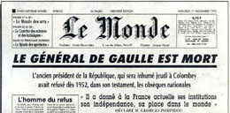 ![]() L'hommage des Chefs d'Etat dans Notre-Dame de Paris Que l'on ait été partisan ou adversaire de la politique du Général, le nom de Charles De Gaulle, restera associé pour l'Histoire à ceux des plus grands : Saint-Louis, Henri IV, Louis XIV, Napoléon, ... |