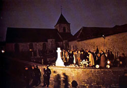 ![]() Aprèd des heures de défilé de personnes connues et anonymes, le soir voit encore se recueillir des fidèles |