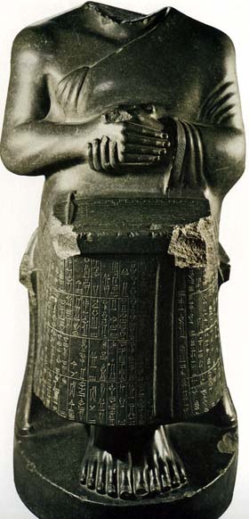 ![]() Tête de massue (2400-2000 avant J-C) ![]() Statue de Goudéa, Roi de SUMER ( 2100 avant J-C ) Le Texte décrit la restauration du temple du dieu Ningirsou L'Ecriture cunéiforme sumérienne va s'adapter à d'autres langues : à Suse (actuellement sur le territoire de l'Iran), chez le Hittites d'Anatolie (en Turquie d'Asie), dans tout ce qui sera l'ancien Empire Perse (c'est l'ancêtre du Persan actuel) et même au sud de la Palestine et au nord de l'Arménie. ![]() Plaquette en argent, gravée au poinçon, datant du règne de Darius 1er, roi de Perse (522-486 avant J-C) de gauche à droite : en perse, en babylonien, en élamite (Suse) |