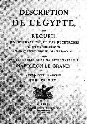 C'est grâce à la"pierre de Rosette" qu'en 1822, Champollion déchiffrera les hiéroglyphes. De nombreux ouvrages seront consacrés à cette redécouverte par les participants à cette épopée ; notons principalement : "Le Voyage dans la basse et la haute Egypte", de vivant Denon, et surtout "La description de l'Egypte", publiée en 20 volumes par l'Institut. |