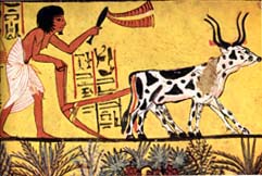 On laboure la terre avec une charrue en bois