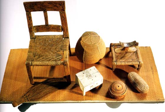Mobilier "de base" : Natte, chaise, balai, coffrets