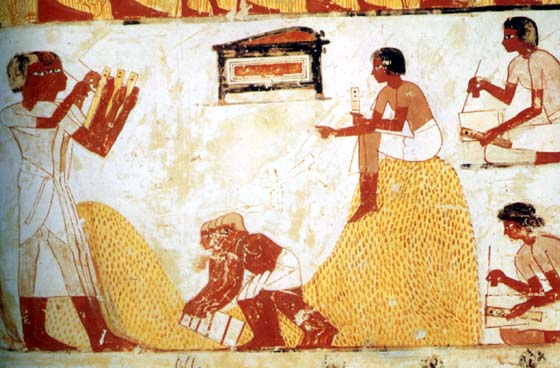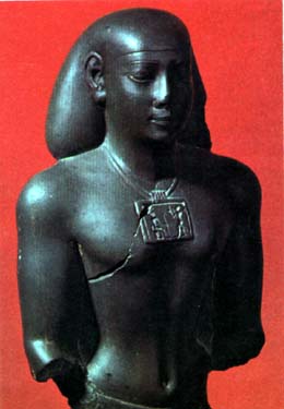 Les Architectes et bâtisseurs (palais,, temples, pyramides, tombeaux ...) sont très appréciés. Les Fonctionnaires-administrateurs sont très nombreux, l'Etat étant très hiérarchisé. Le Vizir, sorte de Premier ministre, est le "bras droit" de Pharaon, donc le personnage le plus important de la Cour ... avec le Grand Prêtre (ou Premier Prophète) d'Amon. Dans les Provinces (ou Nomes) les Gouverneurs sont directement sous sa responsabilité. Il contrôle la Justice, la Police, le Fisc, les Travaux publics, les Affraires étrangères, les Transports, ... et participe au Conseil de Guerre avec Pharaon et ses Généraux. Ci-contre, un Vizir avec le collier pectoral portant l'image de Maat qui représente la Sagesse et la Justice. <--- |