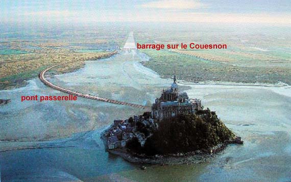 Le but est que les courants du Couesnon et les marées entourent le Mont naturellement. Un nouveau barrage sur le Couesnon aidera à déblayer, sur plusieurs années, les sédiments qui se sont accumulés depuis des décennies. La démolition de la digue-route et des parkings actuels permettra la libre-circulation des courants et redonnera au Mont son aspect maritime. Le stationnement se fera sur la côte. Un système de navette sera établi qui permettra d'amener les touristes au Mont par un pont-passerelle qui n'entravera pas les marées. De plus un bassin, en aval du barrage, dans l'anse de Moidrey, permettra de réguler le débit du Couesnon lors des plus faibles marées. Le coût des travaux est d'environ 200 millions d'euros... soit le prix de la construction d'une quarantaine de kilomètres d'autoroute.. |