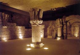 Philippe-Auguste (qui règne de 1180 à 1223) fait protéger la nouvelle enceinte de Paris, sur la rive droite, par un puissant château-fort entouré de fossés. ![]() Charles V (qui règne de 1364 à 1380) fait agrandir et aménager le Louvre pour en faire une résidence confortable pour l'époque. ![]() Base du donjon du château de Charles V ![]() Salle basse du logis du château de Charles V |