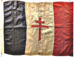 Pour la "France libre", du Général de Gaulle, c'était la croix de Lorraine --> A l'initiative des amiraux d'Argenlieu et Muselier, emblème créé par opposition à la crois gamée des nazis Elle s'inscrivait sur les drapeaux (voir plus bas) et les médailles des ordres liés à la "France libre" |